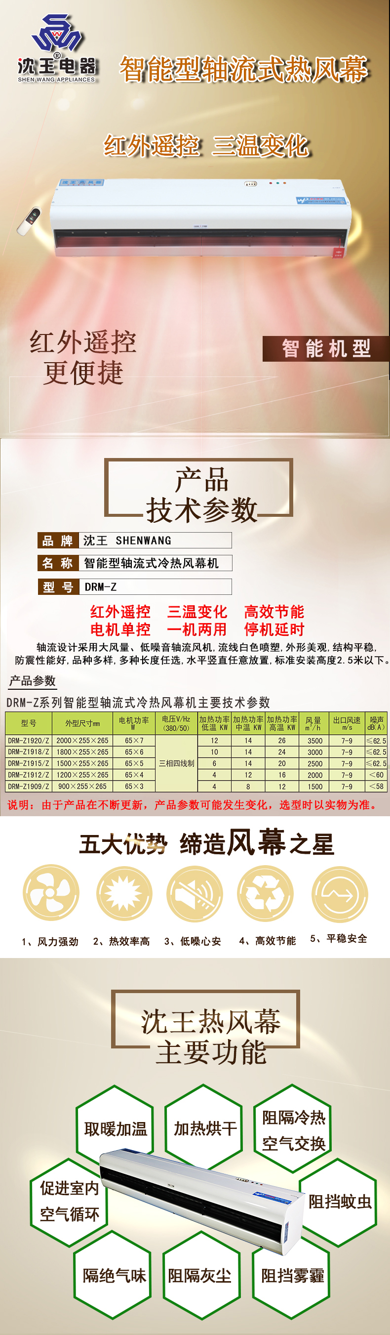 簡介:红外遥控、三温变化、高效节能、电机单控、一机两用、停机延时