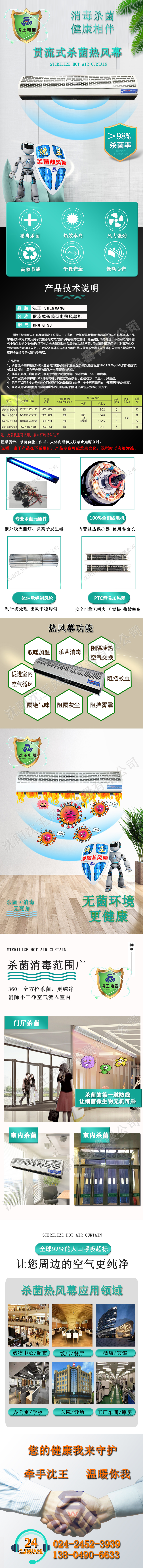 簡介:贯流式杀菌型电热风幕机是沈王公司自主研发的一款新型具有消毒杀菌的电热风幕机,本产品采用紫外线光波或负离子发生器等方式对空气中存在的微生物、细菌进行消毒处理。